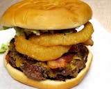 Smash burger patty, bacon, onion, custom 3 cheese blend topped with lettuce, tomato and Smash burger sauce.